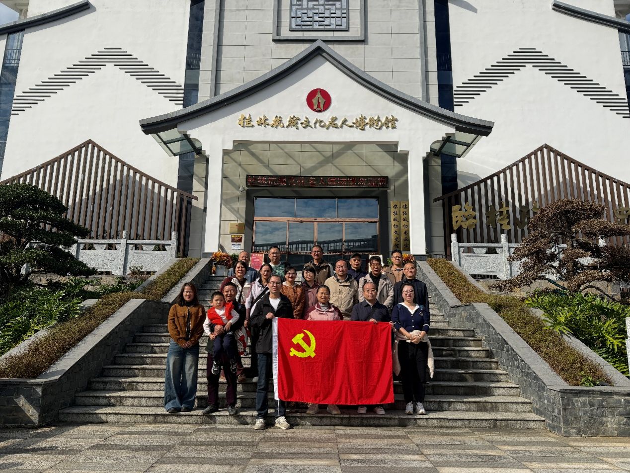 在桂林抗战文化名人博物馆,党员们认真参观了“文化堡垒 中流砥柱”“名士荟萃 文化抗战”“功昭千古 精神永存”三大篇章组成的专题陈列。展览通过780幅历史图片、121件珍贵文物,以及“西南剧展”“岩洞教育”等复原场景,生动再现了抗战时期文化人士云集桂林,在中国共产党领导下以文化为武器开展救亡运动的光辉历程。