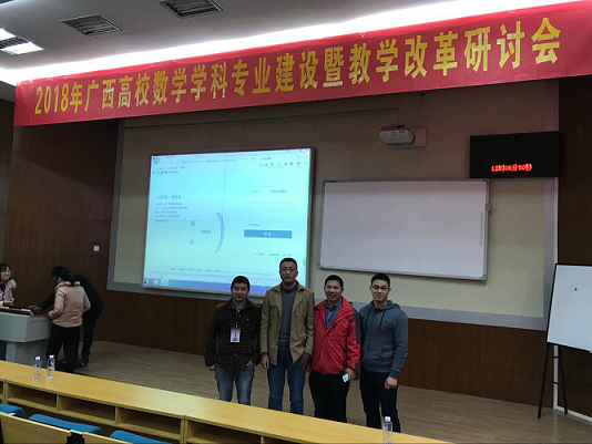 由广西数学学会、广西高校数学类专业教学指导委员会和广西高等教育学会数学教学专业委员会共同主办、广西师范大学承办的“2018年广西高校数学学科专业建设暨教学改革研讨会”于2018年11月23日—25日广西桂林顺利召开。这是广西数学工作者一年一次的盛会,我院教师吴果林、郭述锋、周立新、史旭明以及黄逸飞应邀参加了本次会议。