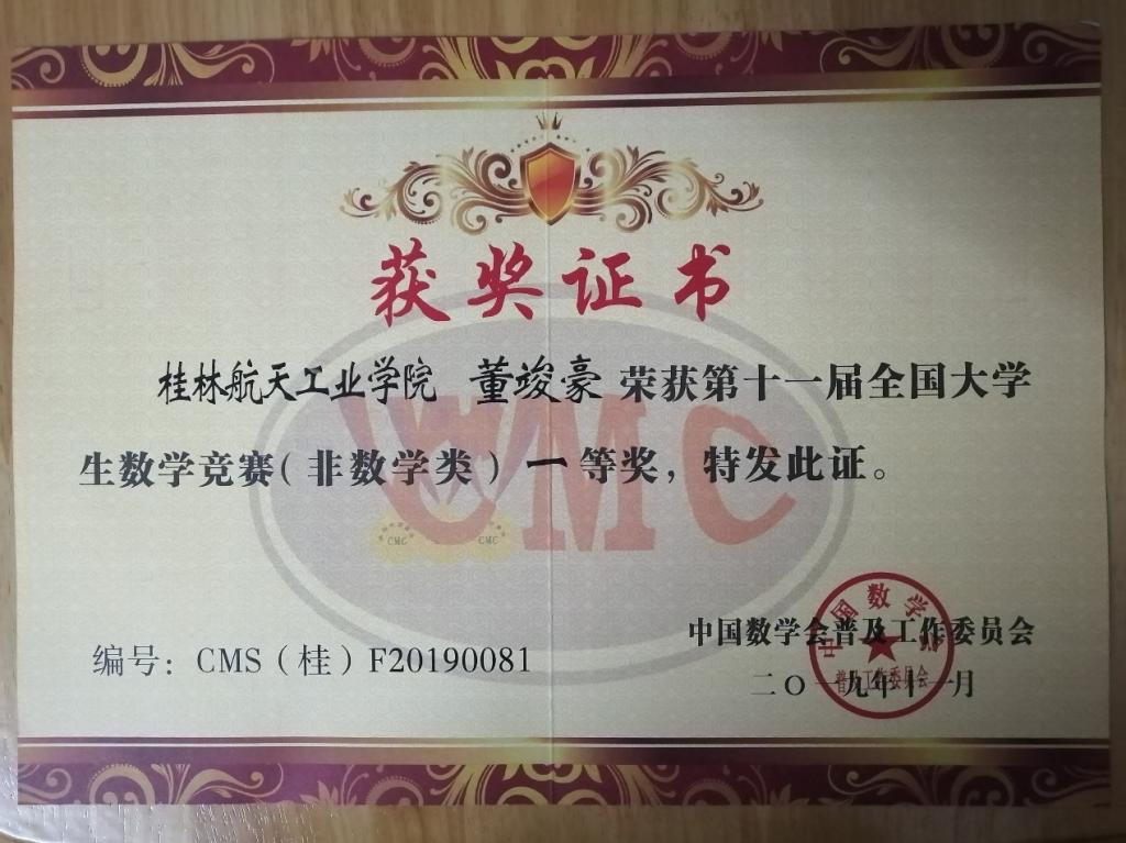 近日,2019年全国大学生数学竞赛颁奖仪式在广西民族大学举行。我校学生在这项国家级数学类学科竞赛中再创佳绩,共取得了一等奖32项,二等奖43项,三等奖63项的历史最好成绩,其中一二等奖获奖人数占其余13所同类院校近一半。