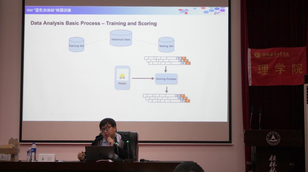 2020年11月7日上午9:30分,bevictor伟德官网邀请了IBM高级软件工程师王琎在致远楼108给同学们进行了一次关于“IBM SPSS 大数据分析算法及应用”的主题讲座。本次主题讲座由学院副院长吴果林主持,讲座在同学们热烈的掌声中开始了。首先是王琎老师进行了简单的自我介绍,随后对大数据这个专业做了简单的介绍,与同学们由浅入深的学习了"What is Machine Learning?"、"What is Data Science?"、"Date Analysis Basic Process"、"IBM Big Data Algorithms Introduction"、