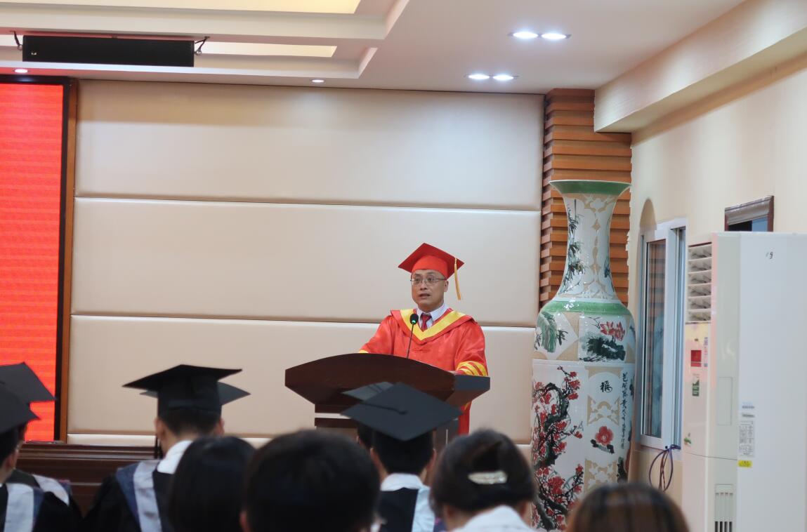 最后,吴尽昭校长寄语同学们:一要坚守使命责任,立足本职敢于担当;二要坚定理想信念,不畏艰难积极进取;三要坚持终身学习,不懈探索追求卓越。希望大家带着老师们的殷切期望和师弟师妹们的祝福,艰苦奋斗、脚踏实地,扎扎实实地走好人生的每一步,成为工作学习生活上的“开路先锋”和“实干达人”,投身新时代建设,发出时代强音。