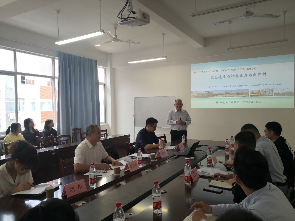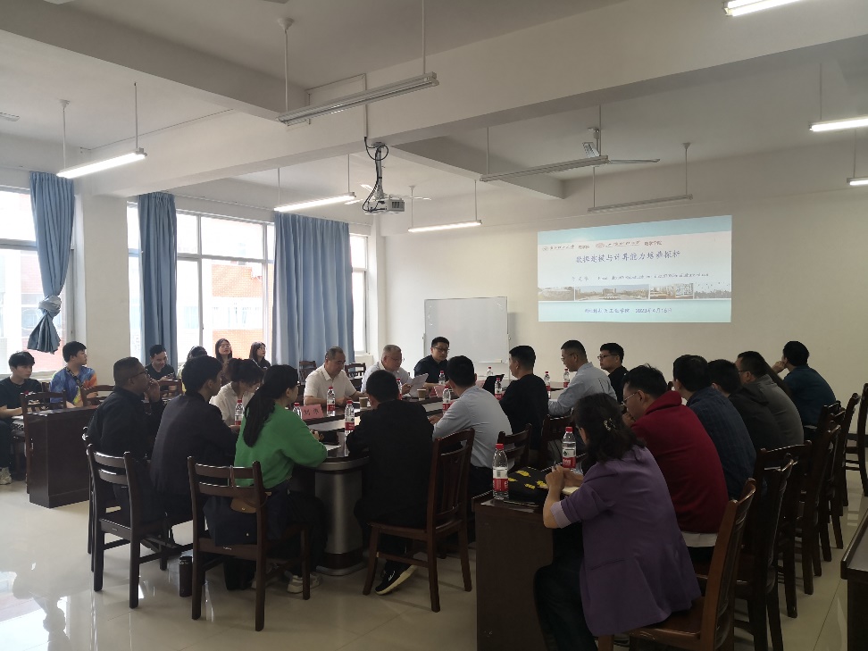 徐定华教授做了题为《数据建模与计算能力培养探析》的专题报告。徐教授从数据建模与计算能力、知识体系和课程体系、数据建模与计算能力培养之探索以及数据建模与计算案例分享四个方面全方位阐释了数据计算及应用专业的全流程培养方案和设计。同时,以专业互通发展为契机,联结数据科学与大数据技术专业的培养方案和设计,对我院大数据专业的人才培养目标定位、教学大纲的制定、实训条件建设方案以及学科交叉复合团队建设提出了宝贵的意见。刘可伋教授和刘单教授也对我院专业建设积极建言献策。