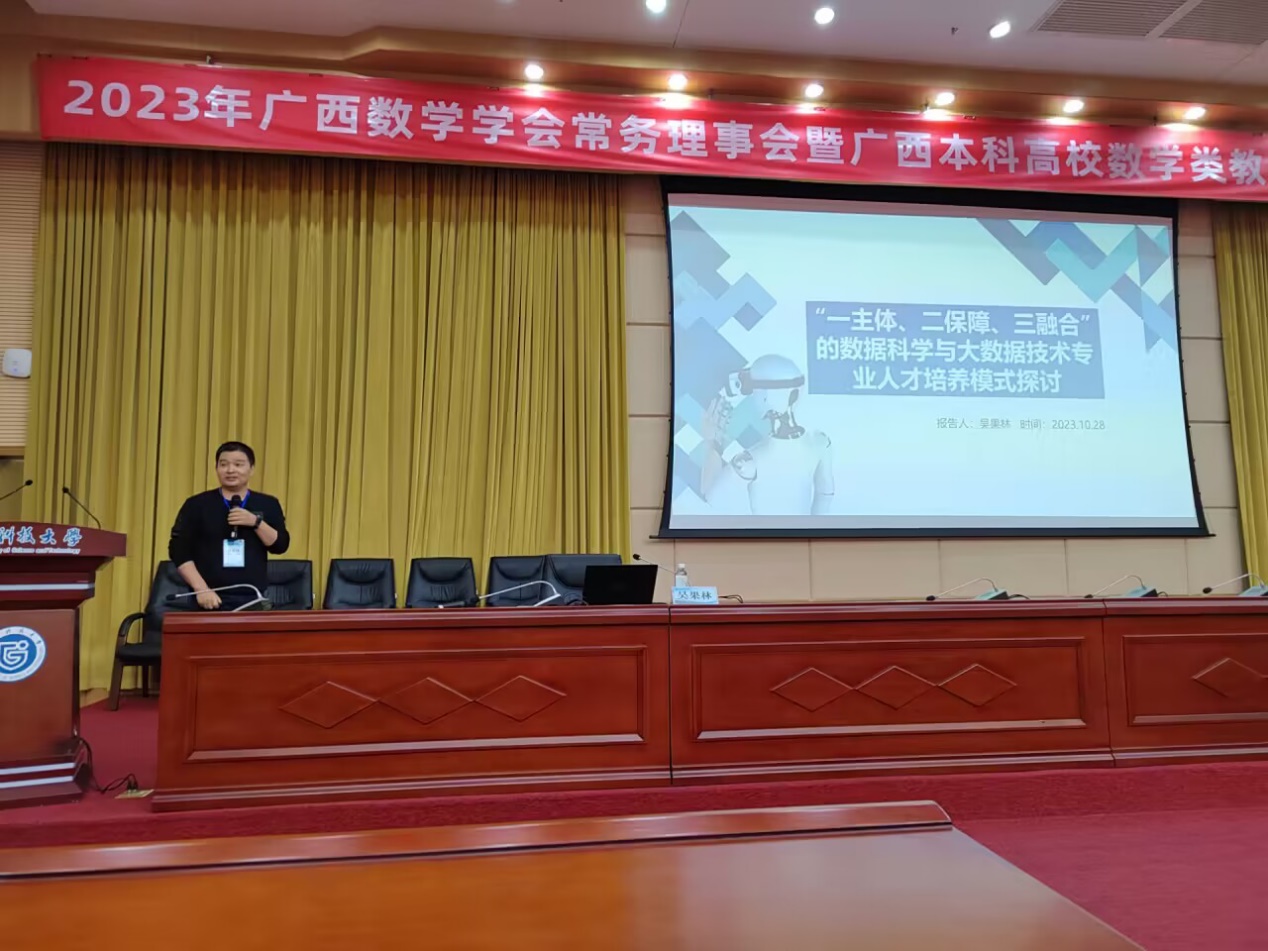本次会议汇聚了广西壮族自治区内170余位数学领域的专家学者,大会由广西数学学会、广西本科高校数学类教学指导委员主办、广西科技大学承办。会议组织了多名区内外专家做了多场专题报告,bevictor伟德官网副院长吴果林博士做了“一主体、二保障、三融合”的数据科学与大数据技术专业人才培养模式探讨的专题报告。重点分享了我校数据科学与大数据技术专业在“新工科”背景下的办学理念和以工程教育认证标准为主体的人才培养方案,推行“专业学习指导手册、本科生导师制”等质量保障制度,构建学科融合、科教融合以及产教融合的新工科人才培养模式,获得与会代表们的一致好评。bevictor伟德官网周立新博士做了“The Schur Complement of