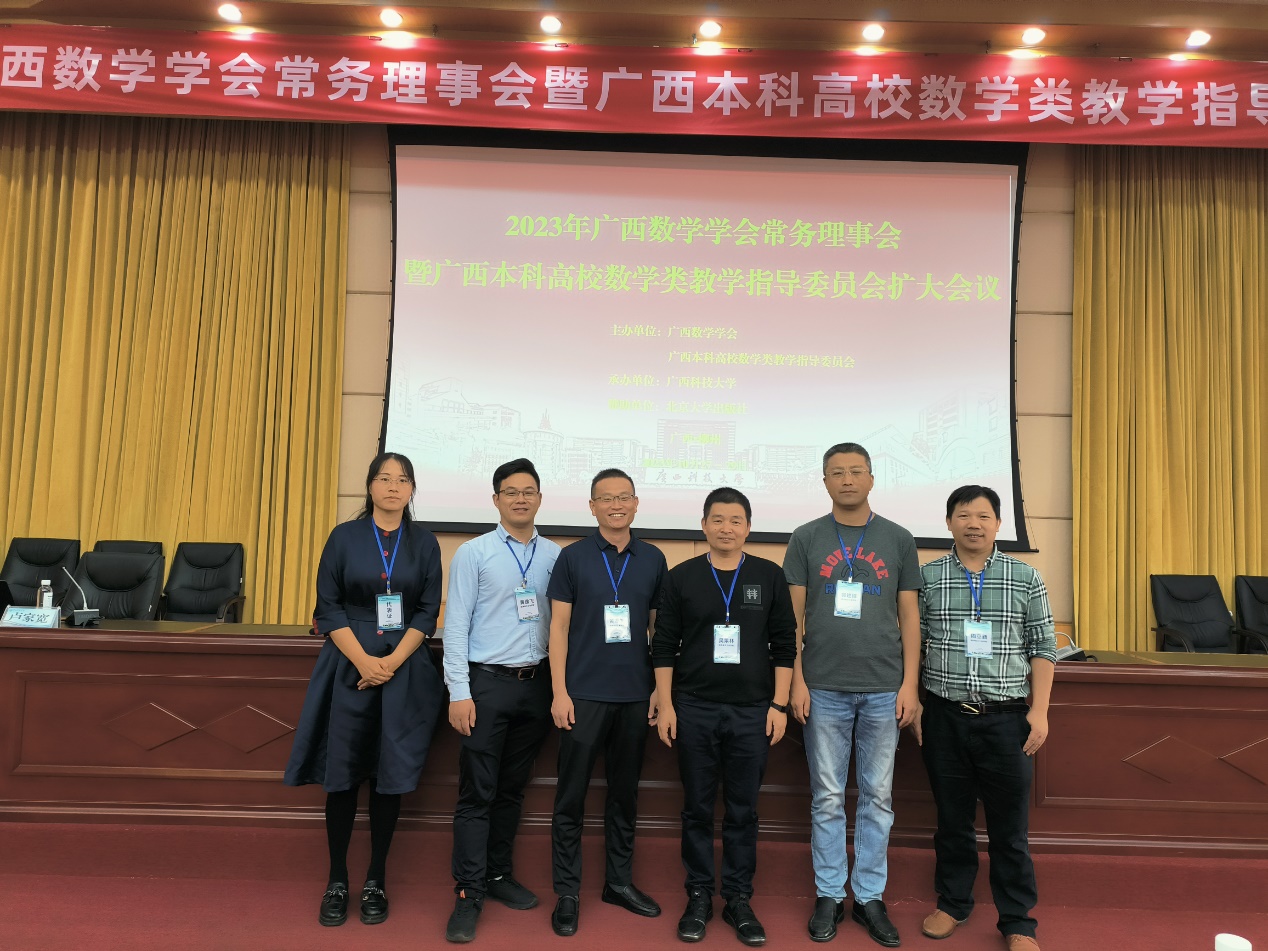 2023年10月27日至29日,广西数学学会常务理事暨广西本科高校数学类教学指导委员会(扩大)会议在广西科技大学召开,bevictor伟德官网副院长吴果林博士、副院长郭述锋博士、院长助理黄逸飞副教授、黄海午教授、周立新博士和范彦勤老师6人参加了会议。