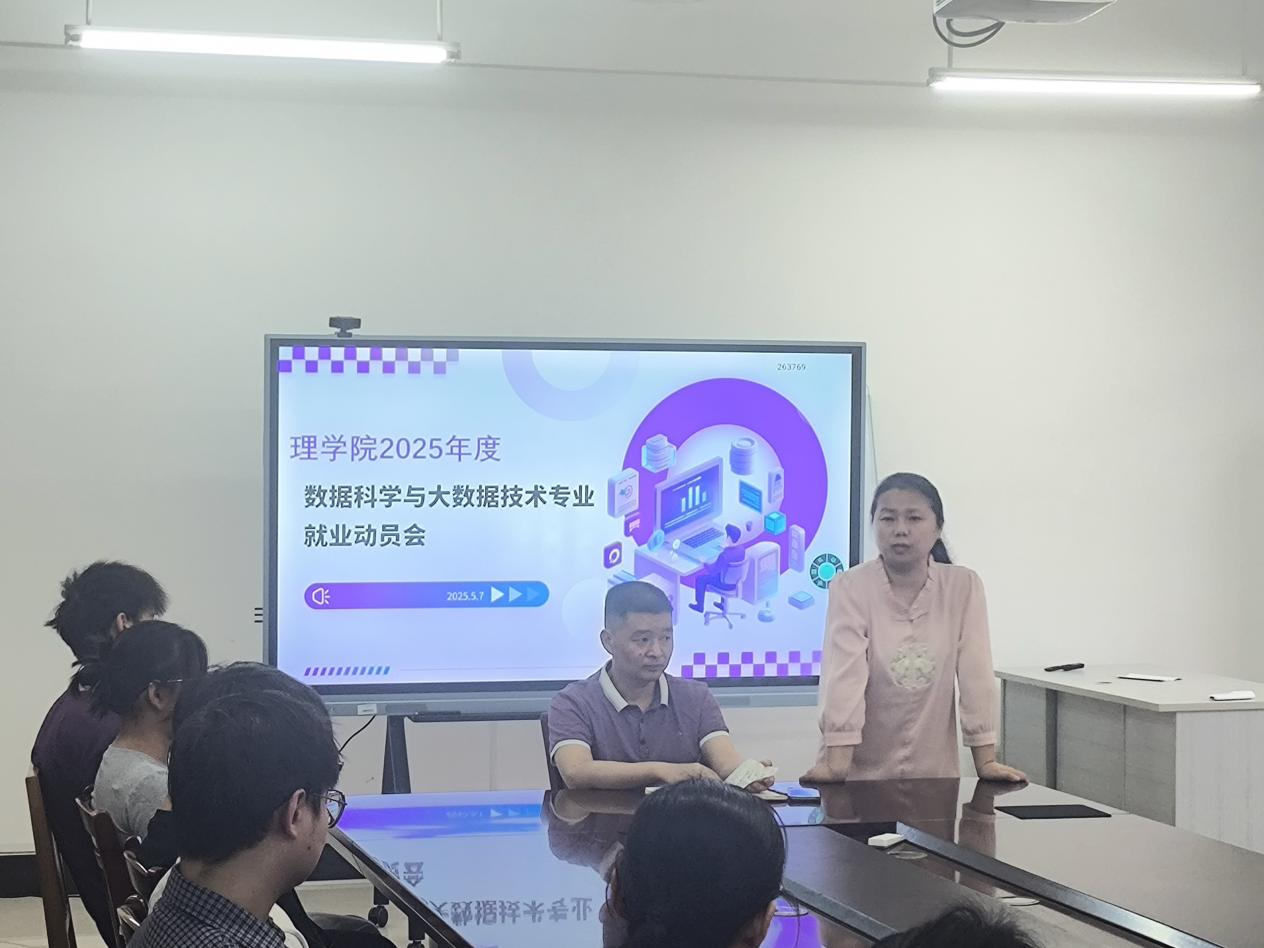会上,党委书记齐灿作动员讲话,深刻阐述了新时代背景下高校毕业生就业的重要意义。齐书记强调,毕业生应立足个人职业发展,主动对接国家战略需求,将自身成长融入社会发展大局。齐书记特别指出,随着人工智能、云计算等前沿技术的迅猛发展,数据科学已成为驱动社会经济高质量发展的核心动力。“根据工信部最新预测,2025年我国大数据产业规模将突破3万亿元,相关领域人才缺口预计达百万级。同学们正处在产业发展的黄金期,要把握时代机遇,在服务国家战略中实现人生价值。”