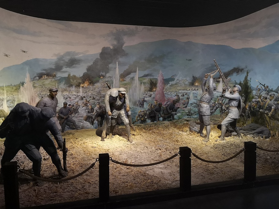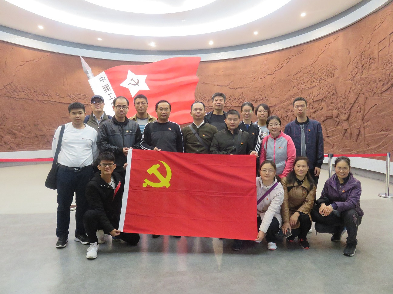 党员们满怀着对红军烈士的崇高敬意,追寻着红军战士勇渡湘江的历史足迹,参观了湘江战役纪念馆。望着一件件珍贵的历史文物、一张张翔实的资料图片、一幕幕复原出的战斗场景、一座座栩栩如生的英雄人物雕像,同志们透过这些生动的历史细节,缅怀了为了革命事业不怕牺牲自我的革命先烈,深切感受到他们身上展现出的可歌可泣的大无畏革命精神。面对着红一军团红二师红五团政委易荡平烈士用过的毛毯、碗盆、水壶,面对着老红军李天佑上将用过的军服、雨衣,大家仿佛穿过了84年的历史时空,回到了当年的湘江战场,看到了一幅幅生死存亡的紧张画面,听到了易荡平等红军英烈的拼杀声和战斗声。