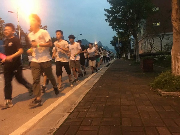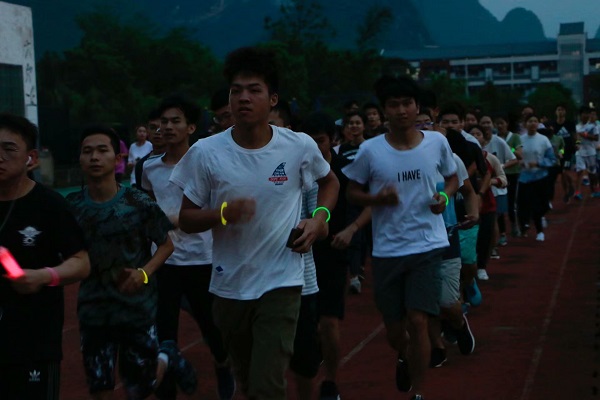 由我校校学生会举办的"荧光夜跑"活动正在如火如荼的进行,许多同学都参加了这个活动,在风雨足球场跑道上十米距离不到,都是参加夜跑的同学。今天晚上通通被十院的同学"吓"到了,一条长龙穿梭于南校的道路上,据了解,十院几乎一个院的同学都自愿参加了这个活动,在此为十院同学点赞,生命不息,运动不止,你还有理由宅在宿舍里面吗?让我们一起走出宿舍,一起跑向一个最美的夏天吧!!!