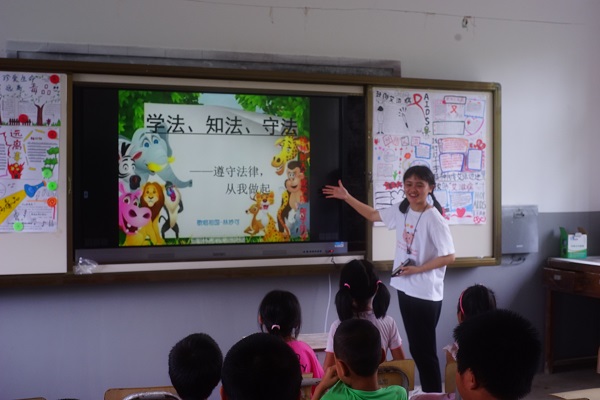 活动中,两个团队主要通过主题宣讲、手抄报展示、海报宣传、合唱红歌等形式围绕暑期安全教育、科普宣传、禁毒防艾、脱贫攻坚和乡村振兴等主题开展活动。此外,在“七一”这个特殊的日子里,学生入党积极分子们还组织小朋友们围在操场的五星红旗下一起歌唱祖国、没有共产党就没有新中国等红色歌曲,一起为中国共产党的98岁生日庆祝。