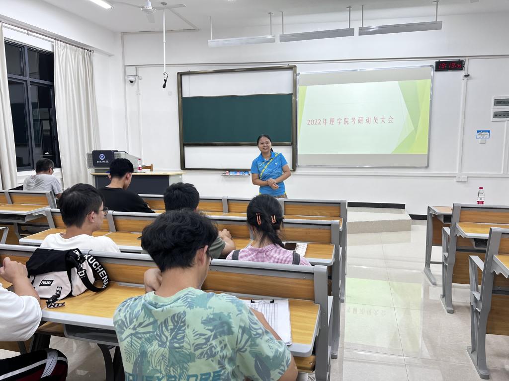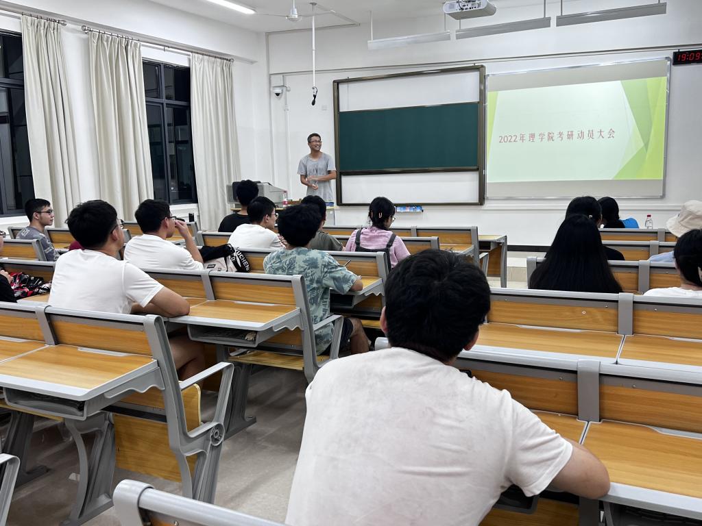 会上,郭述锋副院长做了动员报告,首先分析了2022届考研录取结果和数据,其次结合自身工作经验,讲述了考研时如何选择院校,最后对考研情况进行全面总结,展示和强调了考研的重要性,鼓励我院学子积极投入考研。