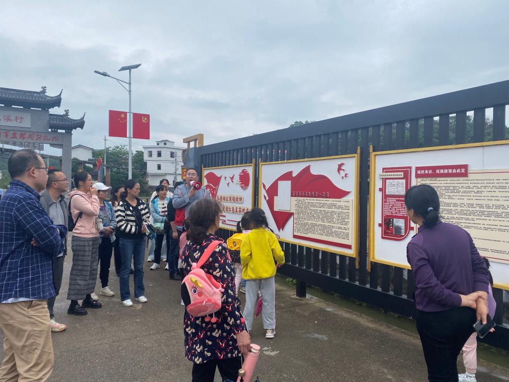 活动中,党员们来到玉溪村的党员活动室,郭述峰院长带领党员们学习了习近平总书记的“把握新发展阶段,贯彻新发展理念,构建新发展格局”的讲话精神,随后,党员们参观了玉溪红色文化长廊并观看《红色玉溪》纪录片,党员同志们感受到了社会主义新农村建设的佳绩,也学习了党的瑶苗民族政策制定的历史故事,了解到这是红军长征以来首次发布的民族工作文件。最后,党员们来到了古民居—月岭村,讲解员带领党员们领会了月岭村的古建筑群,党员们深刻体会到了月岭村对文化传承的高度重视。