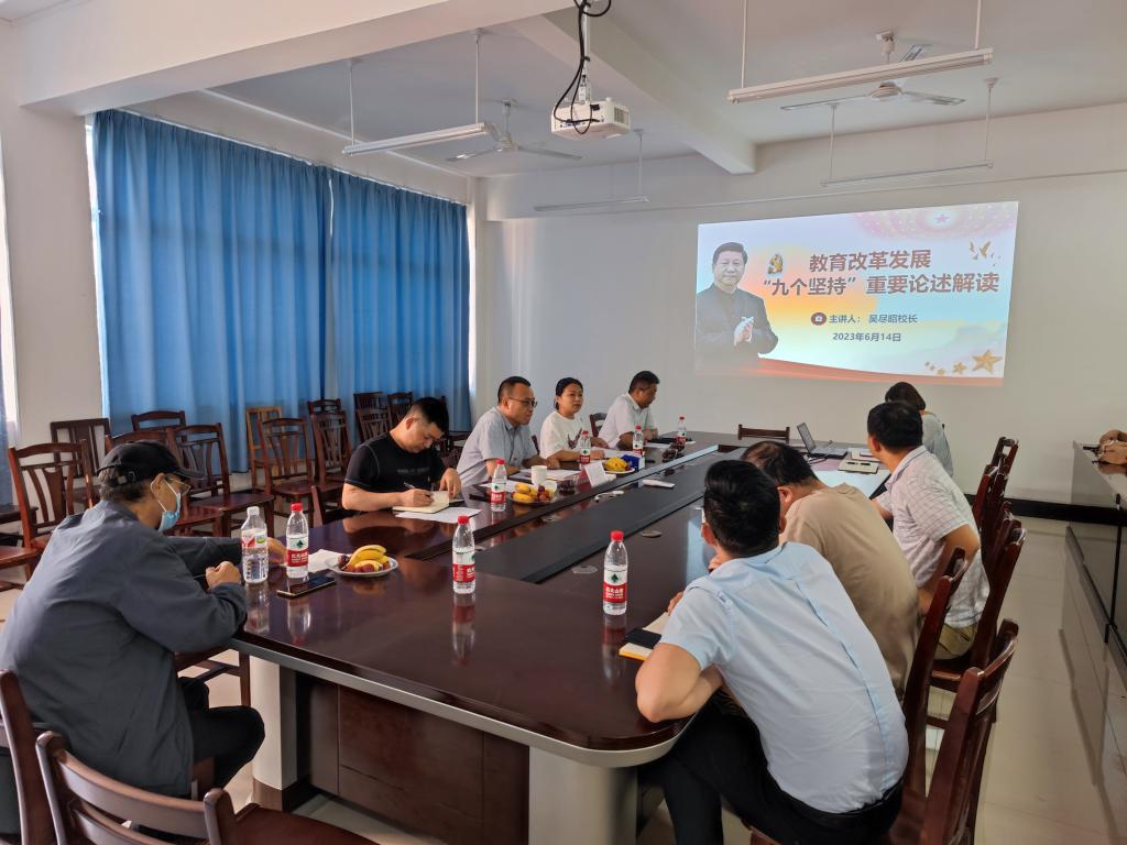 6月14日,在巡天楼404会议室,校长吴尽昭以“教育改革发展“九个坚持”重要论述解读”为主题,为bevictor伟德官网师全体师生党员上了一堂生动的党课。