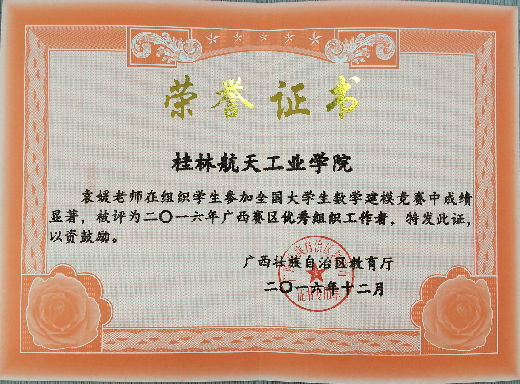 2016年全国大学生数学建模竞赛优秀组织工作者(袁媛)(点击:)